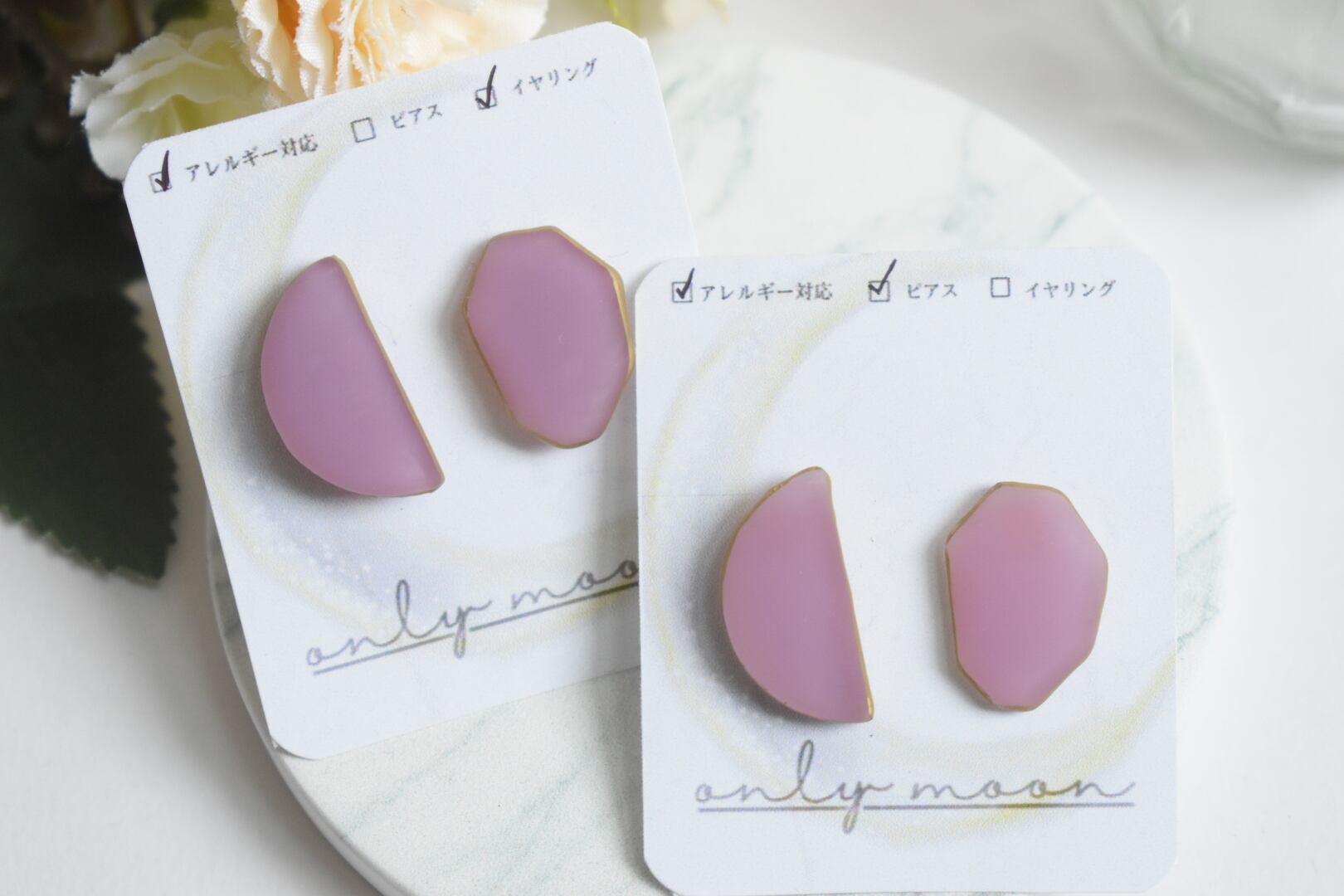 マット素材で仕上げたピアスは、軽やかでありながらも大人の魅力を引き立ててくれます♡