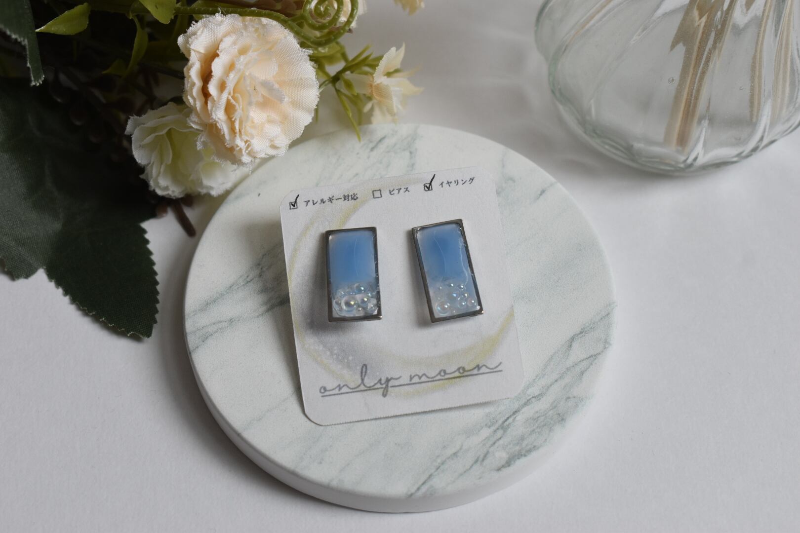 #イヤリング #上品 #涼しさ #シルバーフレーム #バブル #サージカルステンレス #おしゃれ #コーディネート #普段使い #ファッションアイテム #ピアス