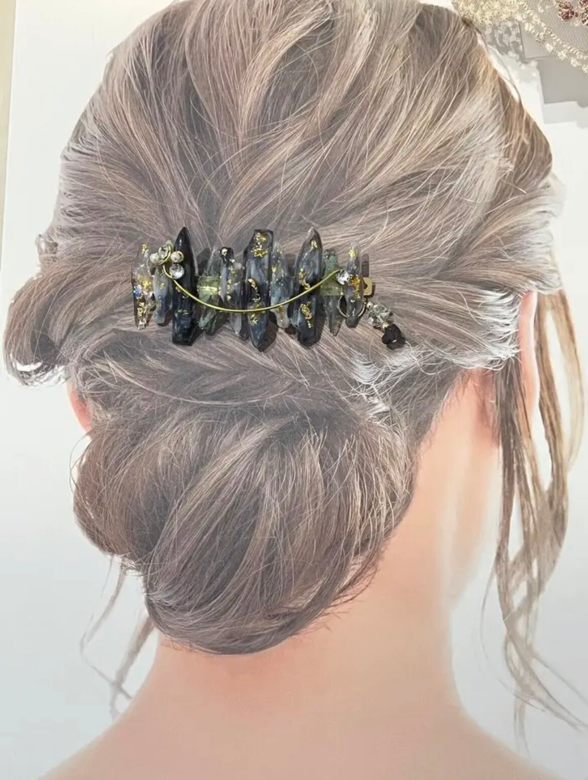 暗くなりすぎない大人なヘアアクセサリーとなりました。